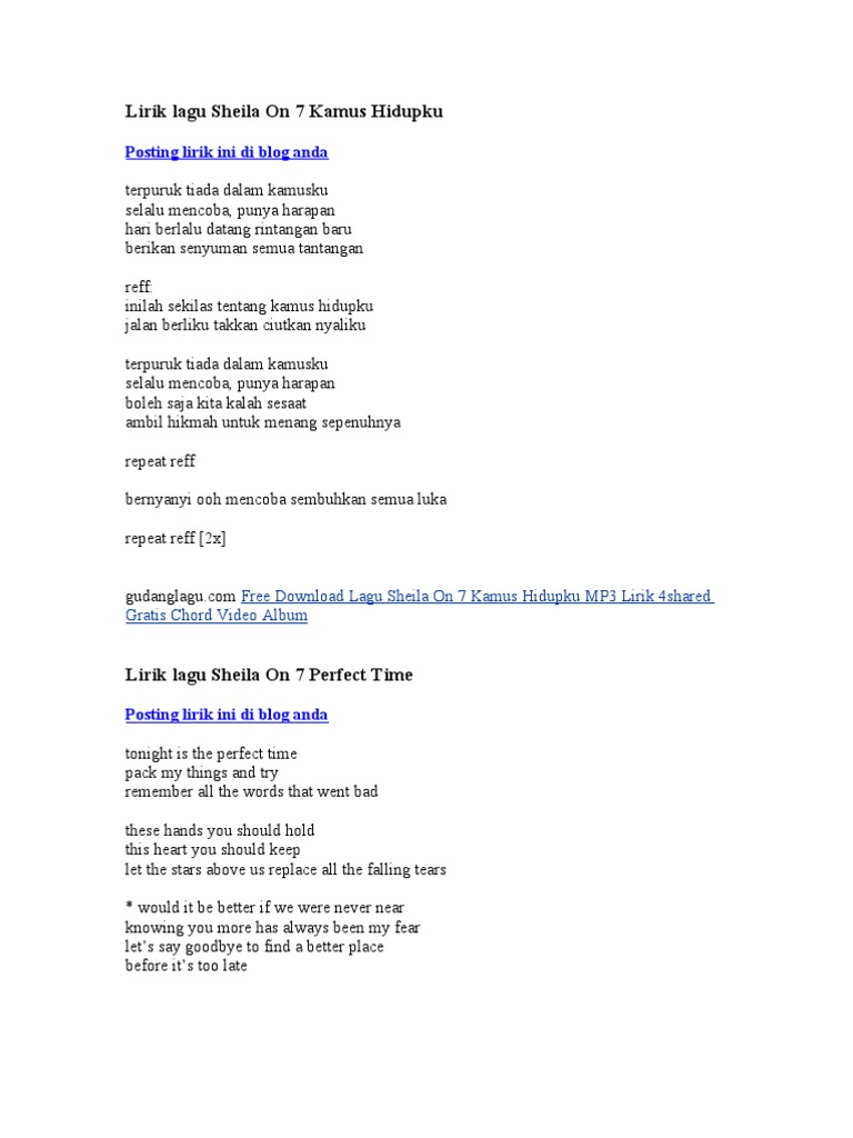 Lirik Lagu Sheila On 7 Kamus Hidupku Pdf